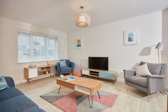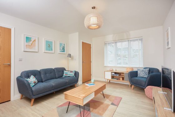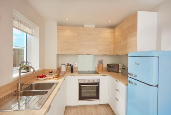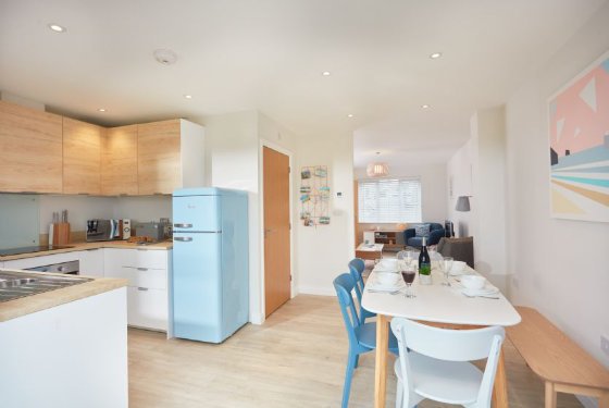 The light and airy open-plan living area is perfect for families with comfy sofas, a large television and a well-equipped kitchen and dining area. The kitchen is fully equipped with an oven and hob, microwave, fridge/freezer, Nespresso coffee machine, dishwasher and washing machine.